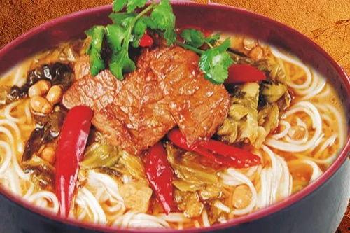 3. 酸菜米线:将煮熟的米线放入碗中,加入酸菜、肉片、豆腐皮等配料,撒上葱花、香菜,即可享用。